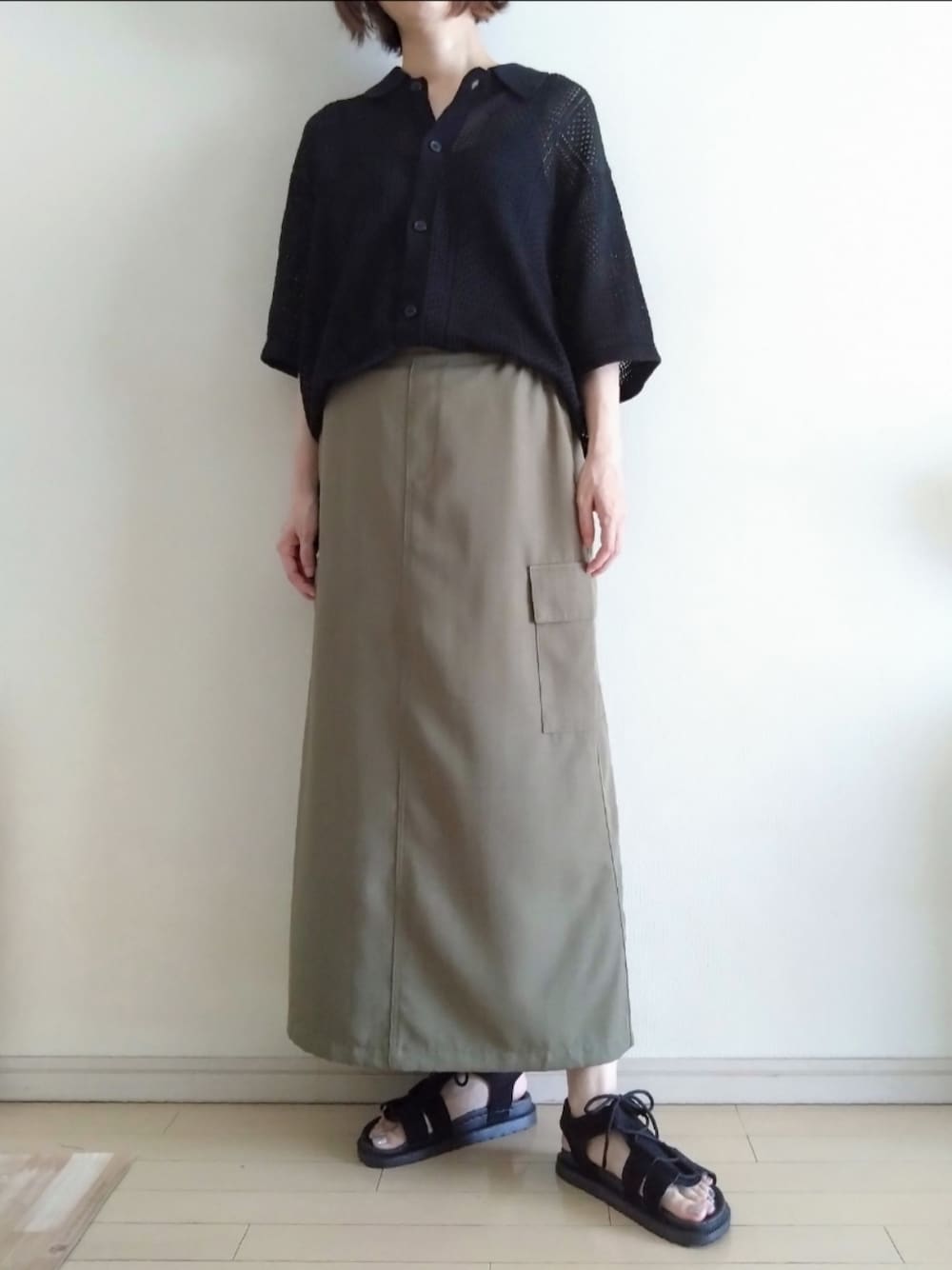 kazaneのシャツ/ブラウス「MENS ウォッシャブルメッシュニットシャツ(5分袖) サイズ:L/カラー:09 BLACK」を使ったコーディネート