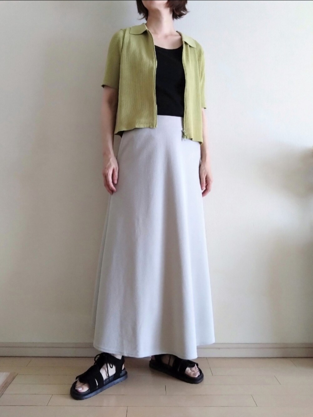 kazaneのカーディガン/ボレロ「衿付きジップカーディガン」を使ったコーディネート