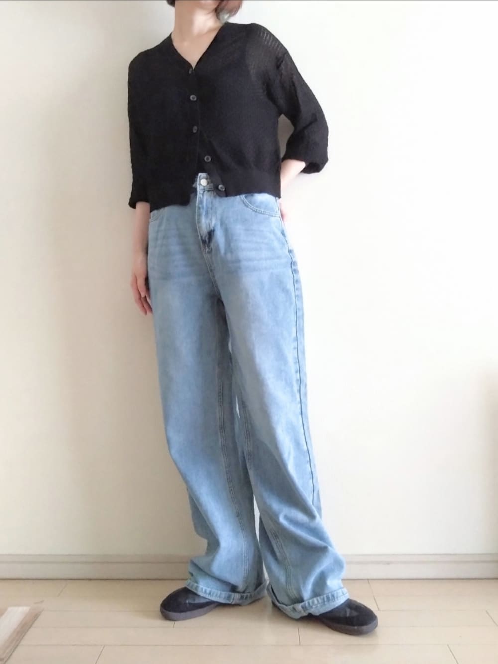 kazaneのカーディガン/ボレロ「シアーVネックカーディガン」を使ったコーディネート