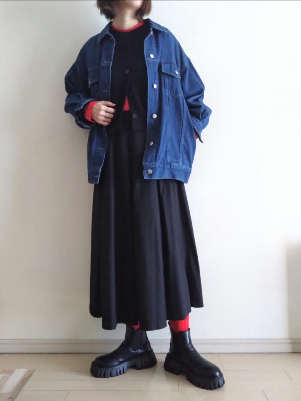 kazaneのデニムジャケット「オーバーサイズデニム&ツイルブルゾン」を使ったコーディネート
