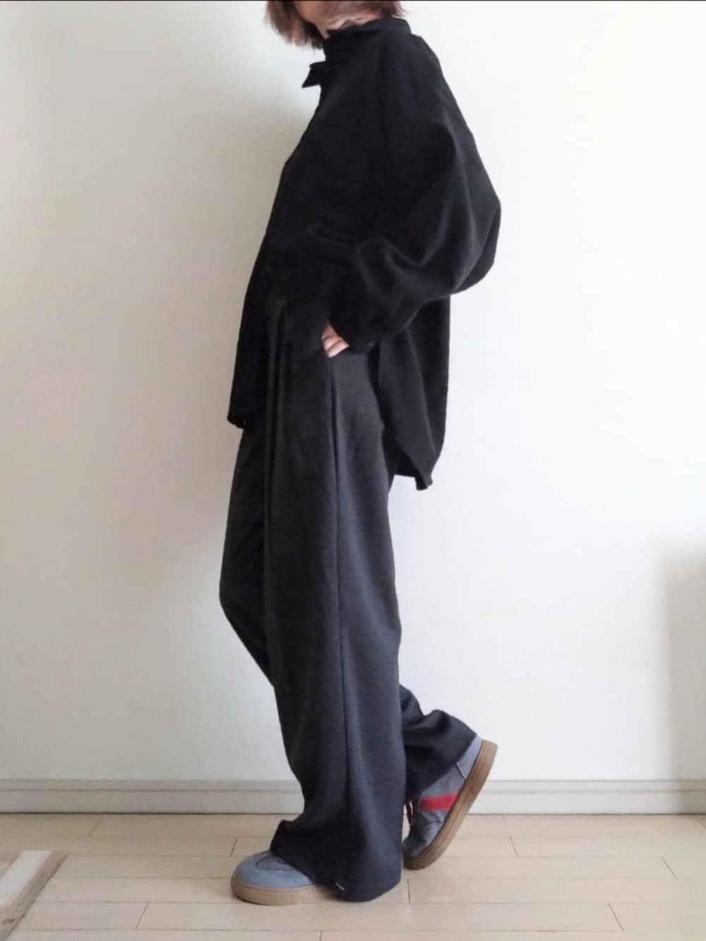 kazaneのシャツ/ブラウス「SHEIN/DAZY ドロップショルダーポケットパッチ付きブラウス¥2,012 カラー:ブラック/サイズ:L」を使ったコーディネート