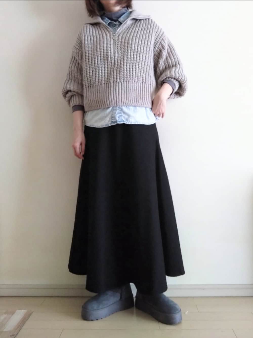 kazaneのニット/セーター「チャンキーニットハーフジップセーター カラー:ライトベージュ/サイズ:L」を使ったコーディネート