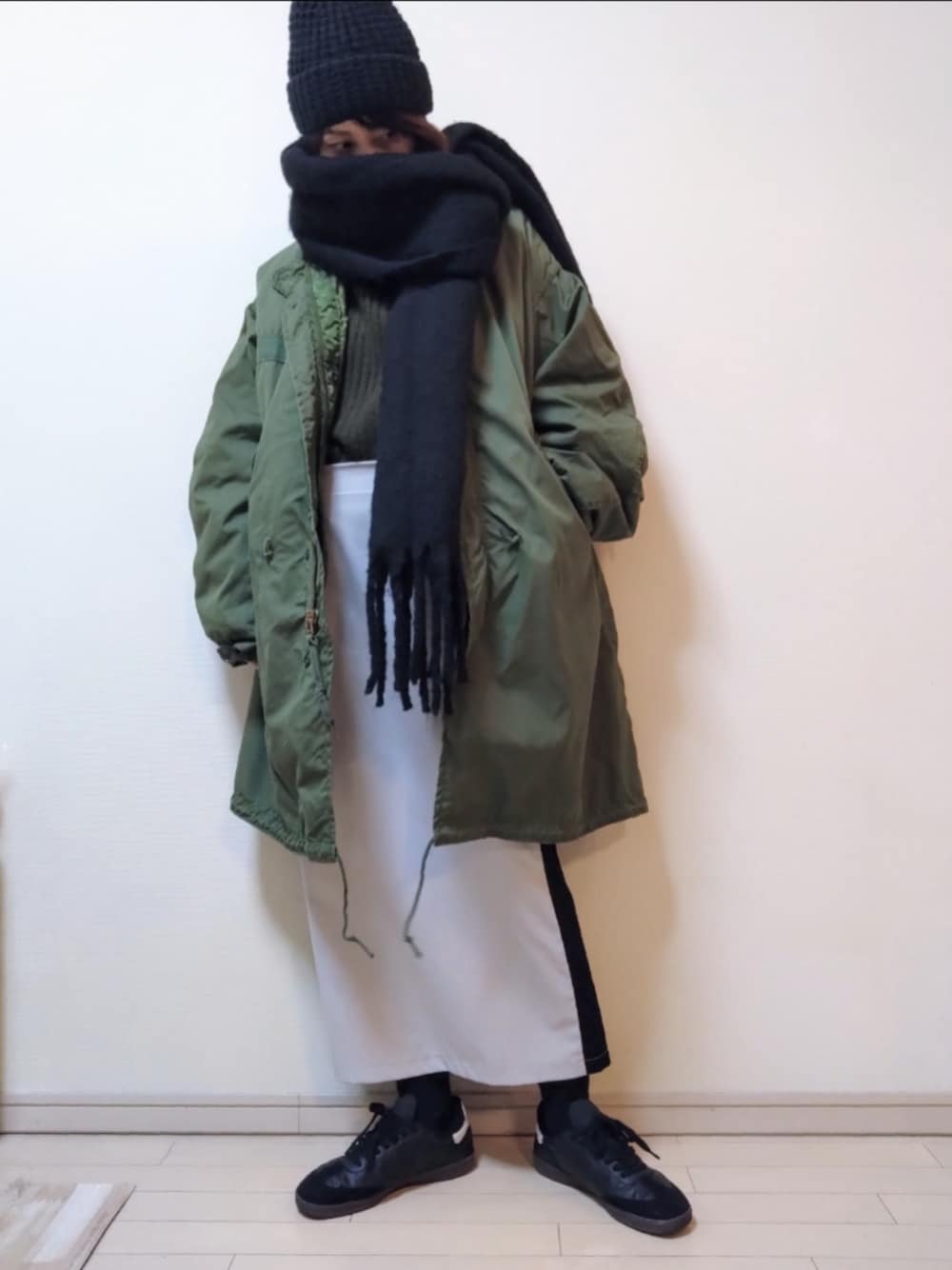 kazaneのニットキャップ/ビーニー「SHEIN/無地柄ロールヘム帽子¥561」を使ったコーディネート