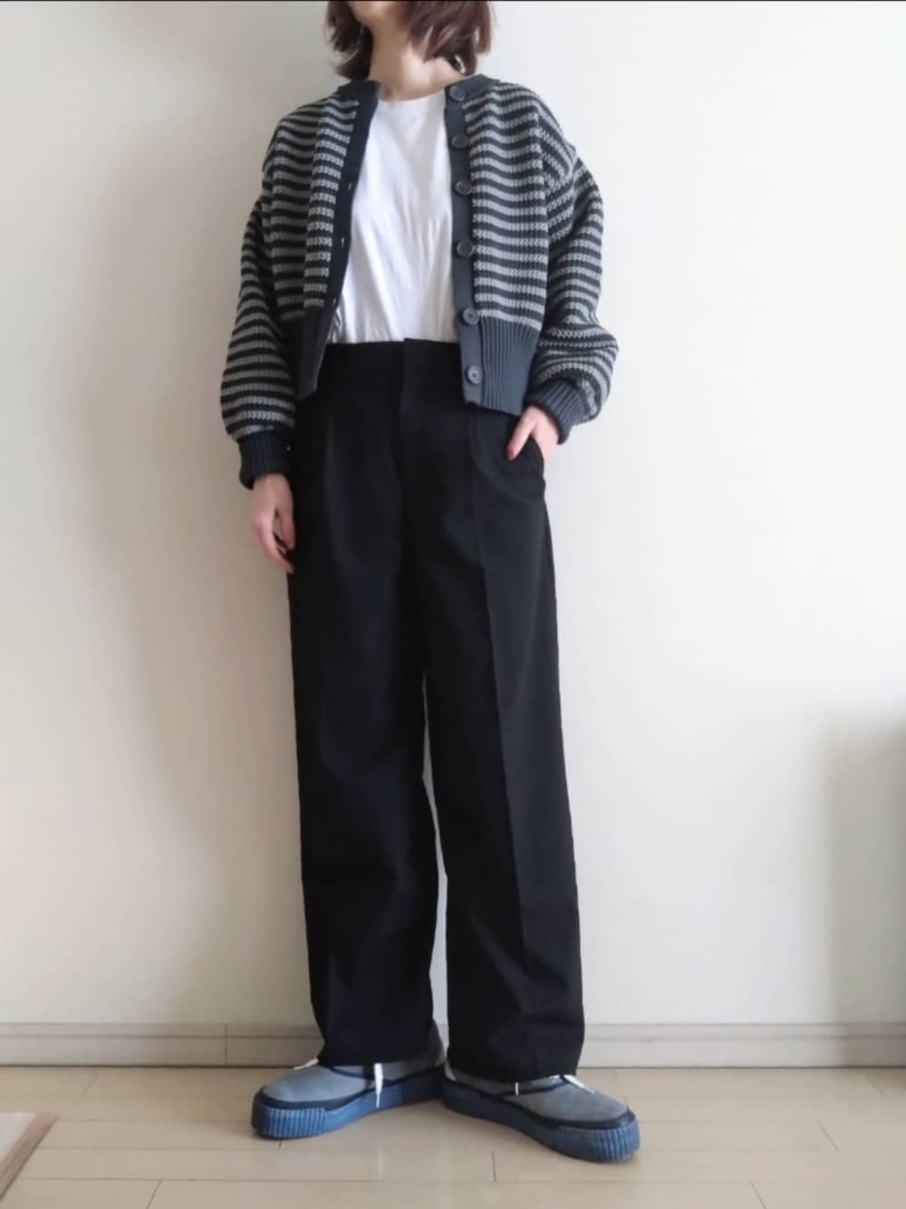 kazaneのカーディガン/ボレロ「【ハンドウォッシャブル】ライトウェイトボーダーカーディガン」を使ったコーディネート