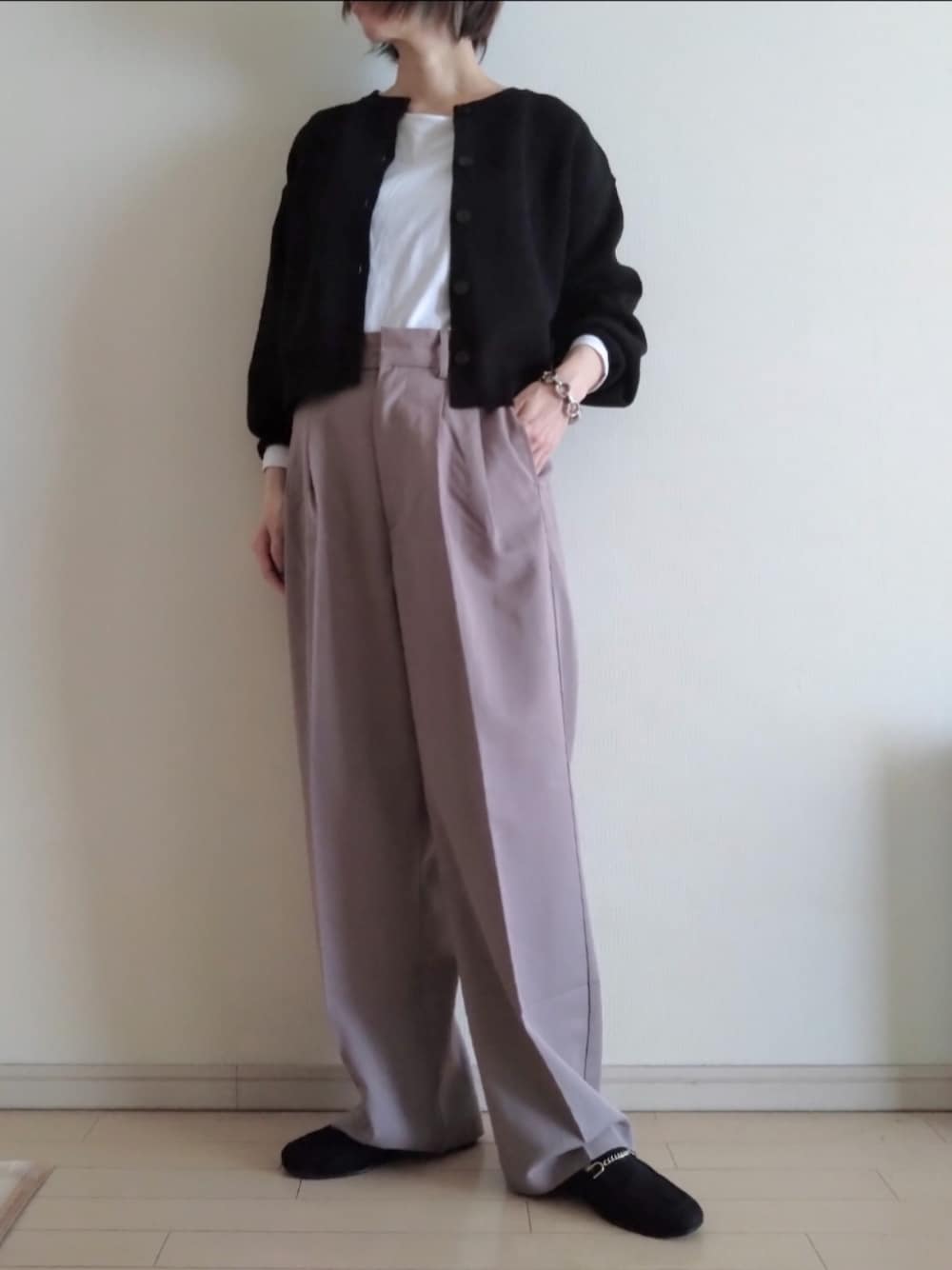 kazaneのカーディガン/ボレロ「2WAYクロップドカーディガン(長袖)カラー: 09 BLACK」を使ったコーディネート