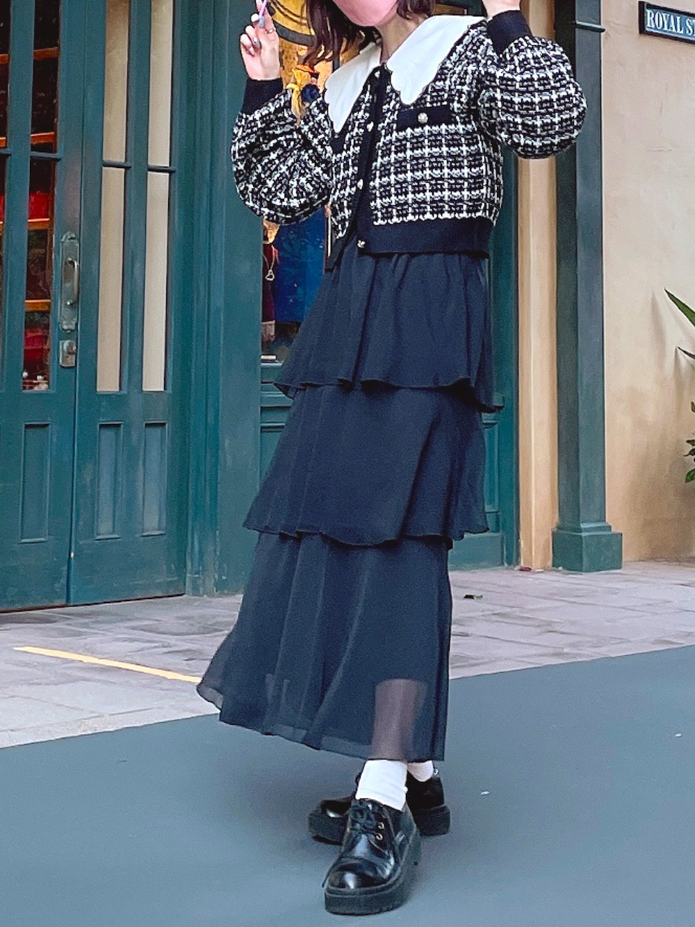 ディズニーお揃いコーデで着用しました。 カーディガンはZOZOTOWNにはなくて、楽天の夢展望で購入しました。 ショート丈でスタイル良く見えて大満足です🤍
