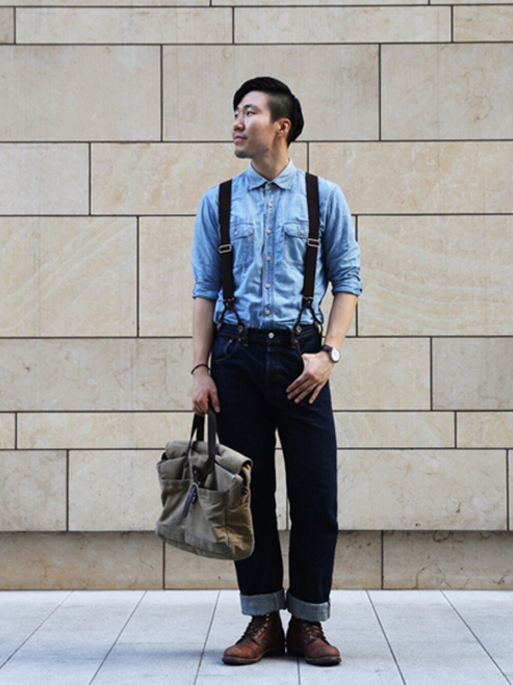 정부중のバッグ「J.Crew Abingdon Waxed Cotton-Canvas and Leather Holdall Bag」を使ったコーディネート