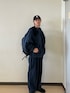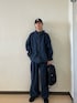 オールネイビーでまとめたワントーンコーデ。 ナイロン素材の軽さとワイドシルエットで、シンプルながら今っぽいバランスに。 キャップとバッグをブラックで合わせて、全体を引き締めました。 ラフに着られて、デイリー使いしやすいスタイルです。