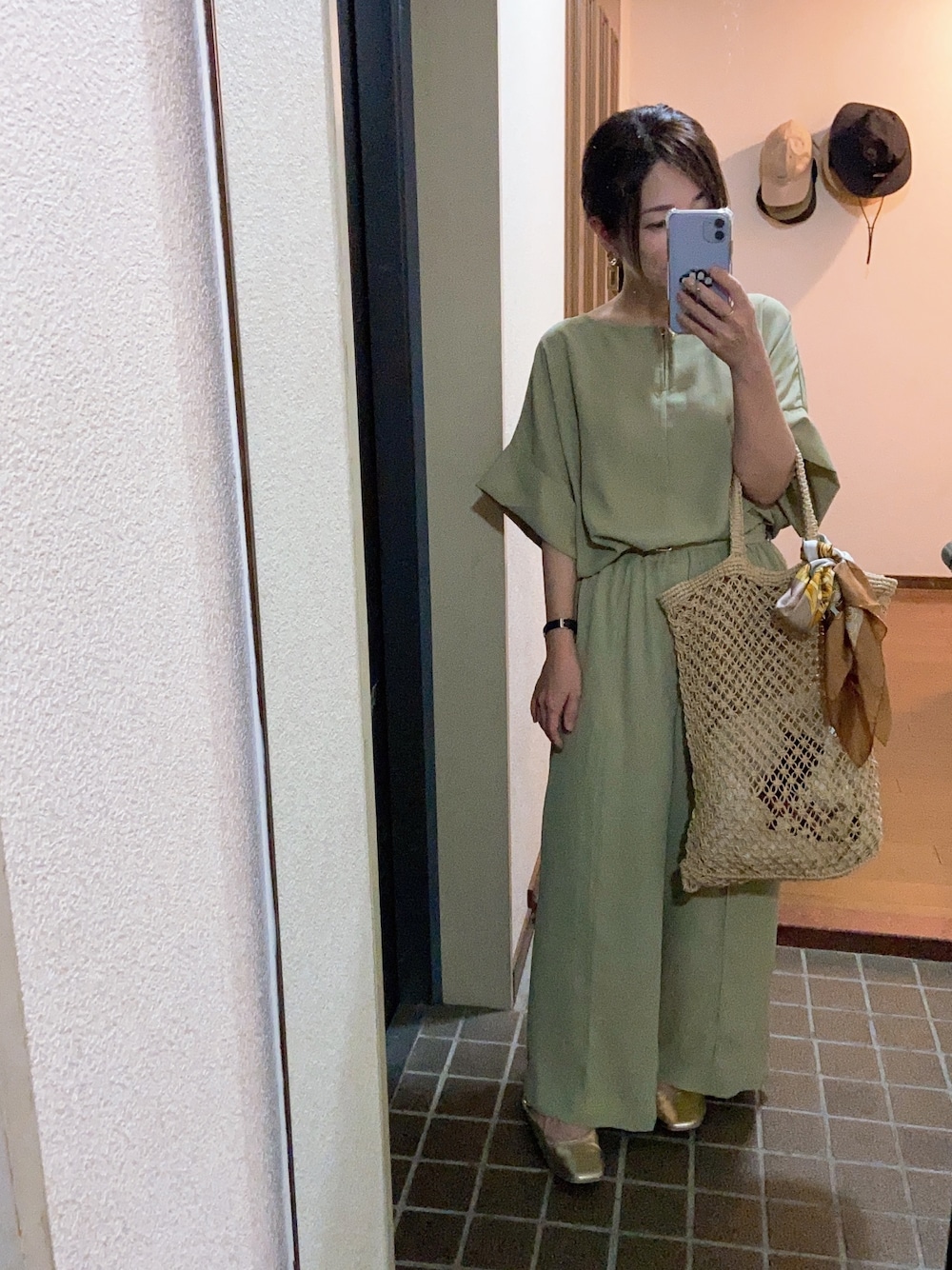 チビなのでパンツは1㎝くらい裾上げしましたが、少し小柄くらいの人ならお直しなしで全然履けると思います。 袖のデザインや首のゴールドのポイント、背中側のデザインなどとても凝ってて可愛いです😊 セットアップは何も考えずに着れるので、 困ったときにあると重宝しますよね💕