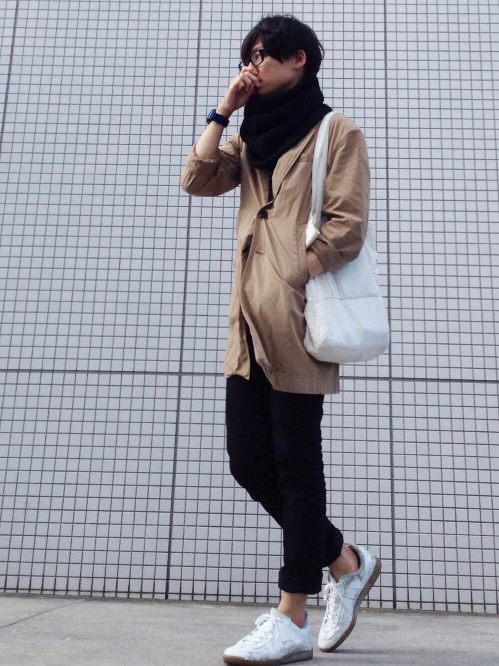 風でコートがわちゃわちゃしてるけど気にしないで下さい…。 いつも前開けて着てるけどたまには閉じてみました。