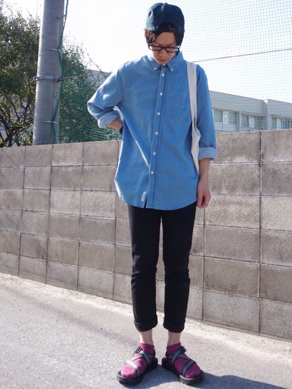yuのシャツ/ブラウス「Acne Studios Isherwood Button-Down Collar Washed-Denim Shirt」を使ったコーディネート