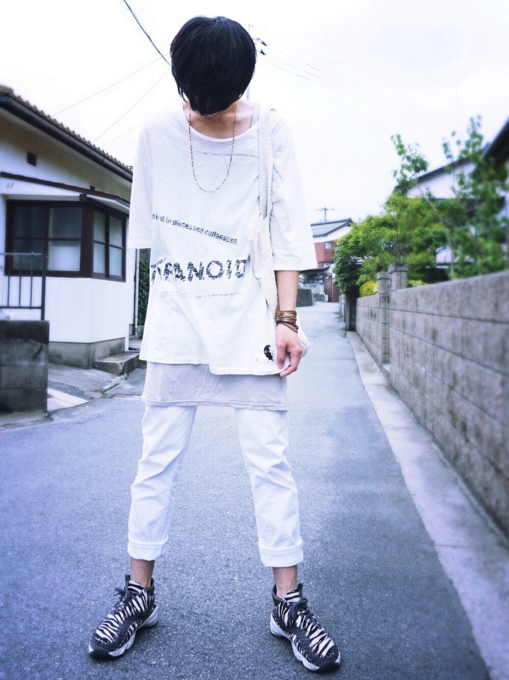 タンクのシワは気にしないで下さい\(^o^)/ アクネのスキニーはやっぱラインが綺麗ですよね。 白、黒共に同じ形の29インチを履いていますが白の方がゆとりがあります。 黒の染料は縮みやすいんでそのせいかもしれないですね。 普段は服の色が変わったりするのが嫌でフィルタかけないんですが このコーデならありかなーとかけてみました。 Twitter→e_majide_ Instagram→_oreyade ふぉろみー\(^o^)/