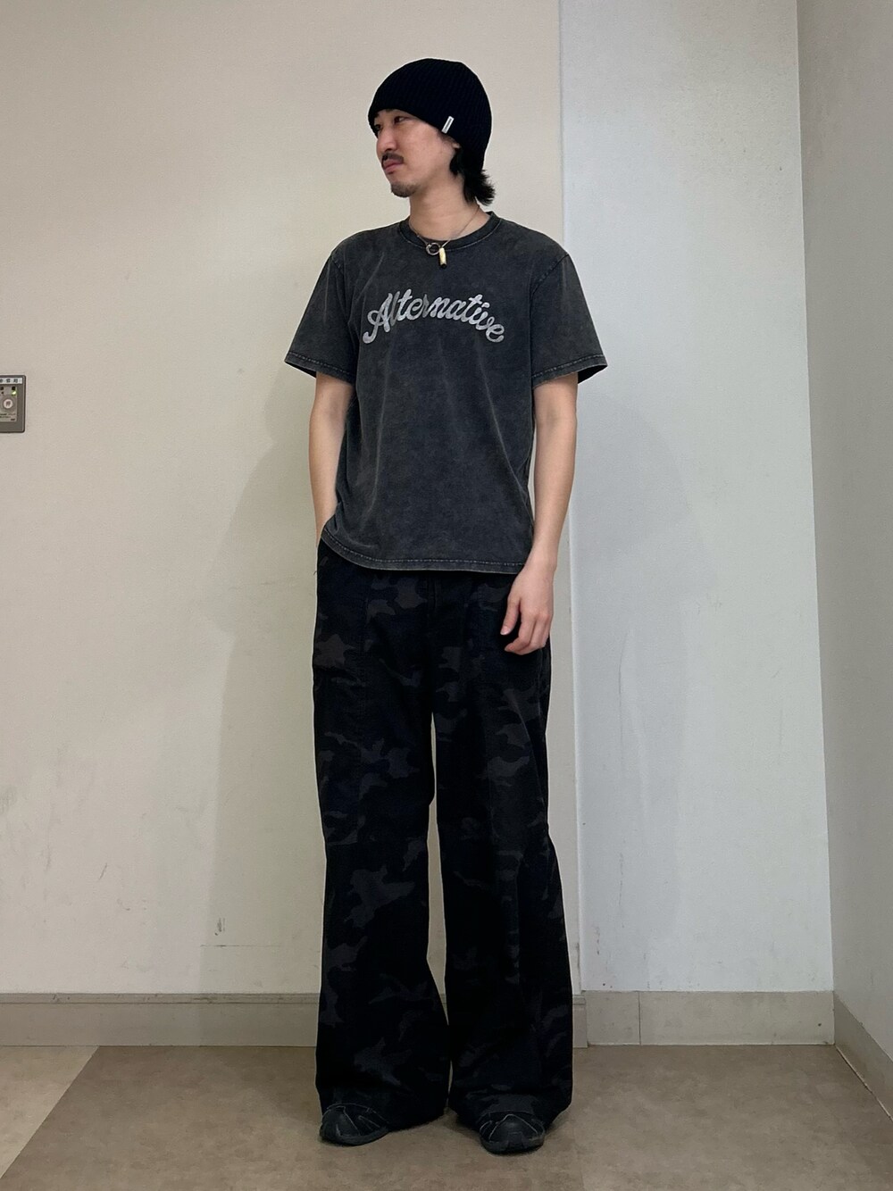 muta(OVERRIDE 南堀江)のニットキャップ/ビーニー「OVERRIDE GIMAMIX SHORT BEANIE SGP / オーバーライド」を使ったコーディネート