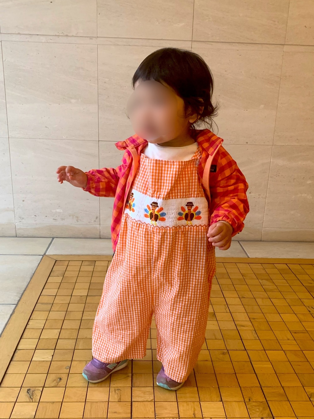 🦄『海外のお土産で頂いたオーバーオールで暖色コーデにしました🌟真ん中の鳥?の刺繍が可愛い🦜』