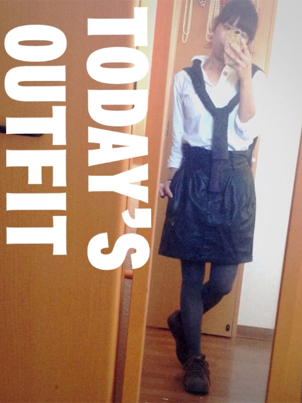 スカートと白シャツでオトナな感じにしてみた! 靴は、結局ブーティに履きかえました。