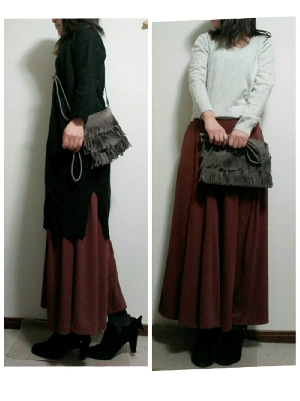 スカンツの下にはグレージュのタイツをはきました。 黒だと重くなるので、そこがこだわり😊 写真だとよくわかりませんね💦 今日もご覧いただき ありがとうございます❤