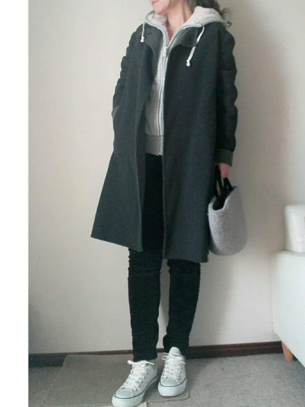 休日楽チンコーデ❤ 裏ボアパーカーに黒のコーデュロイスキニーで防寒❄ スタイル良くないから このコーデは、外出先でアウター 脱がない時限定なのです(笑) 最近は、寒さに負け パンツスタイルばかり…