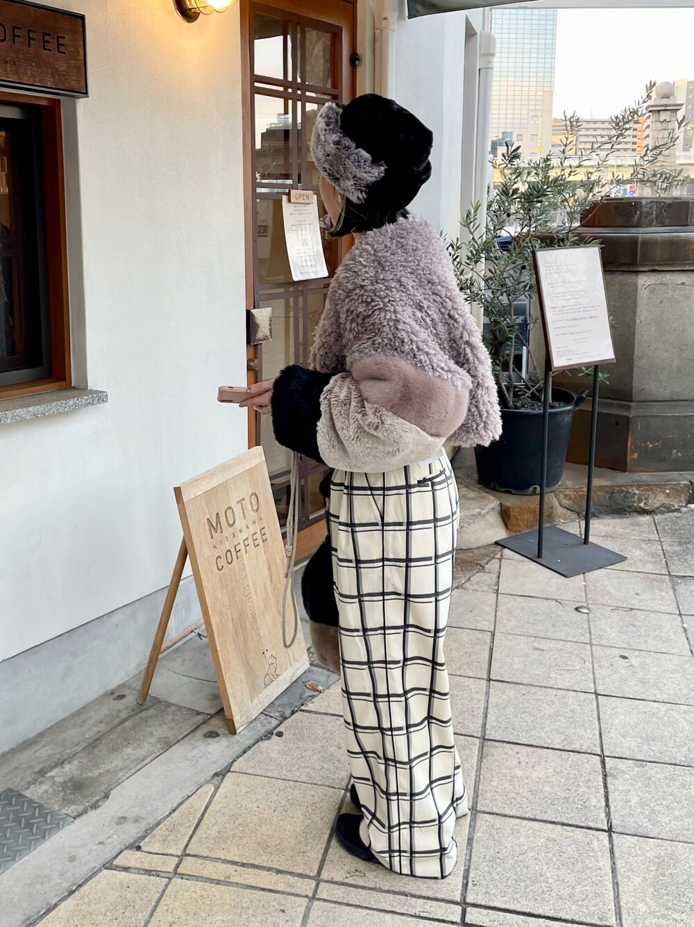 ふわもこモノトーンコーデ ポフミ×ポフミフク (帽子と服のセットアップ) こんな感じでまとまります
