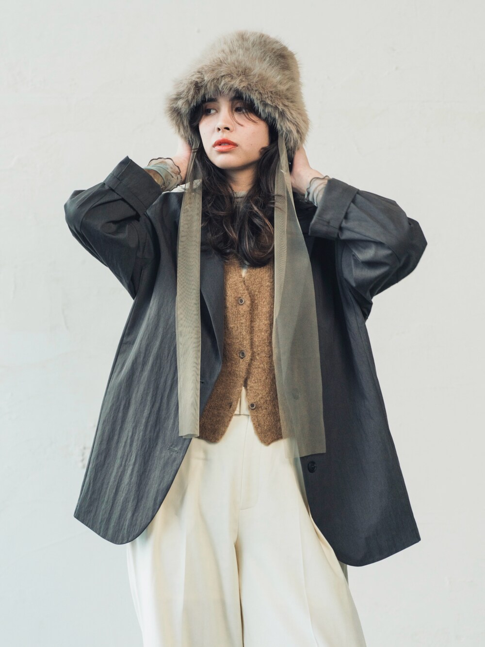 ボリューミーなファーハットとテーラードジャケットのアースカラーコーデ🪴🍂🪵