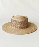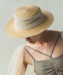 テラコッタ色のチュール羽織りとストローハットの天然草カラーがよく合う◎