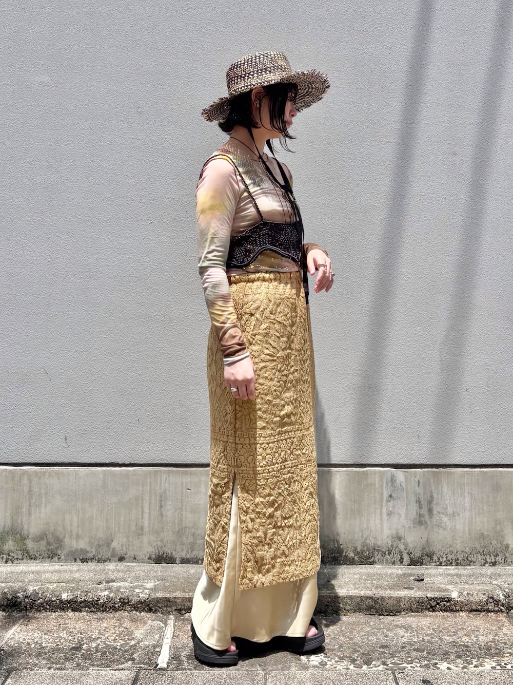 ORIÉNT MILLINERY(ORIÉNT MILLINERY)のハット「MIXA【ミクサ】ラティス編みフリンジカノチェハット」を使ったコーディネート