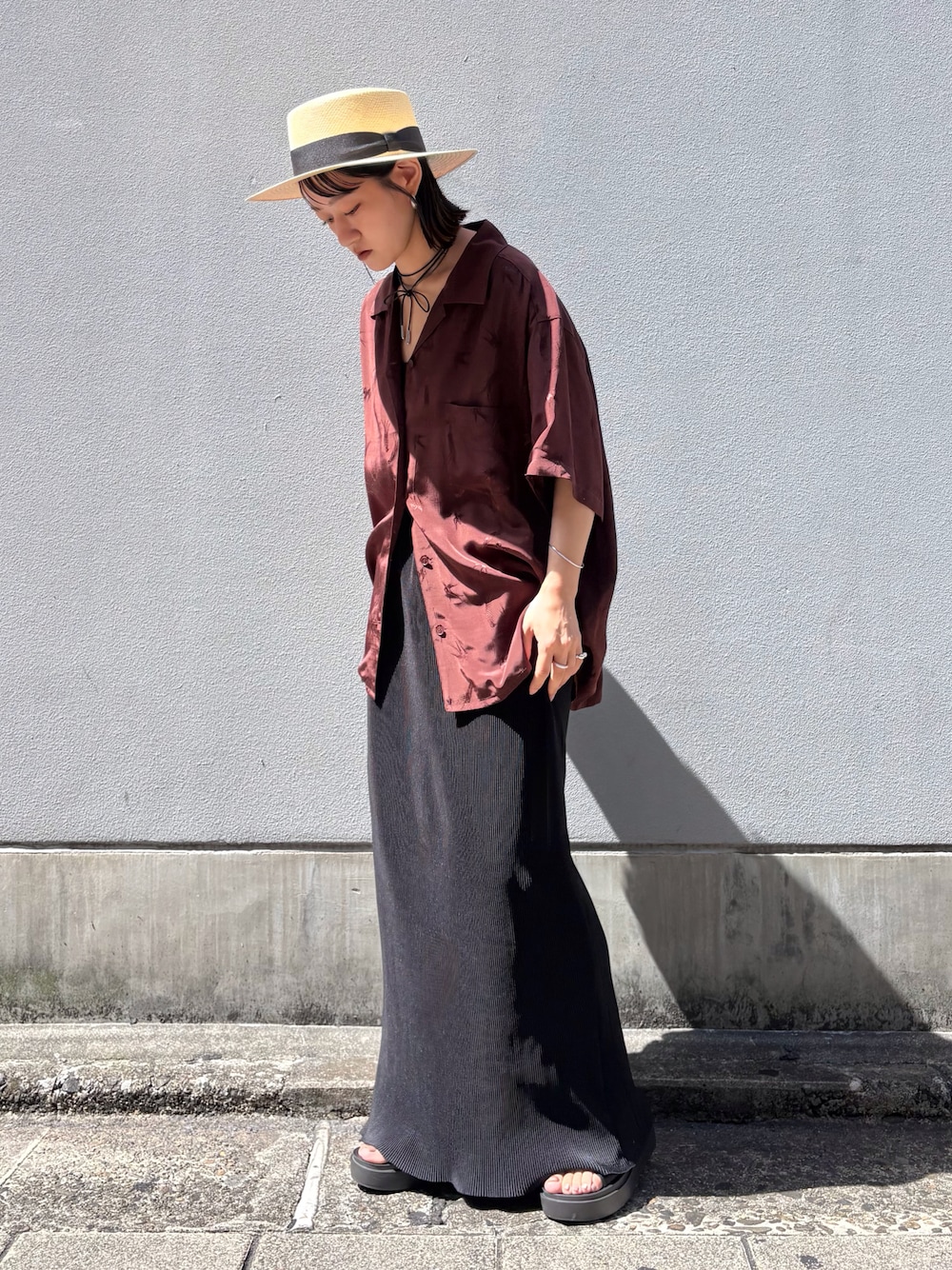 ラフなシャツコーデにツバ広カンカン帽を合わせてリゾートライクなスタイリング🏝️ 普段よりワンサイズ上げて楽ちんに被っています◎