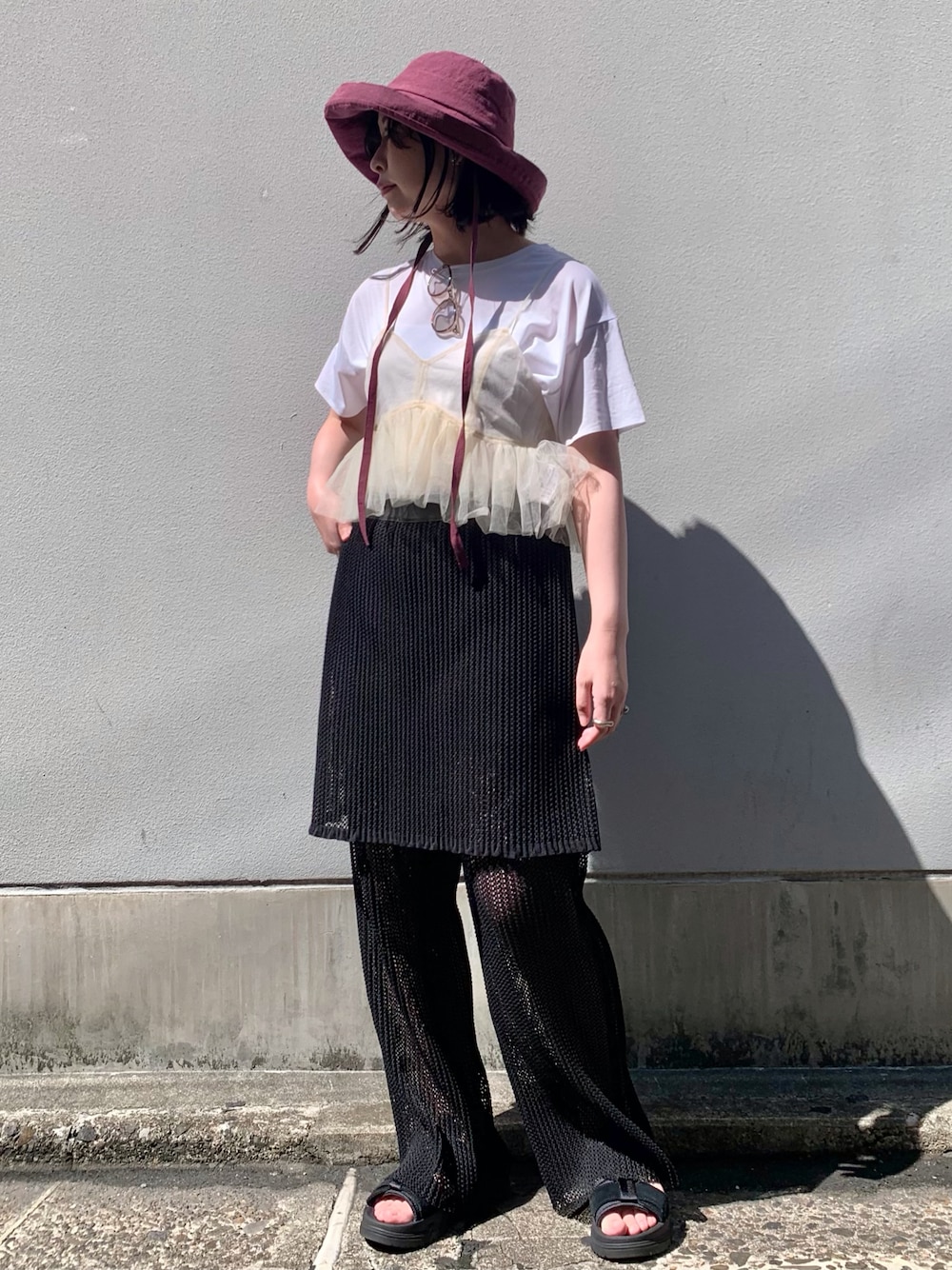 上品なリネンハット×カジュアルコーデ☕️ 着用感は、頭囲56cmでサイズアジャスターを2cmほど縮めて被るとちょうど良いくらいです◎