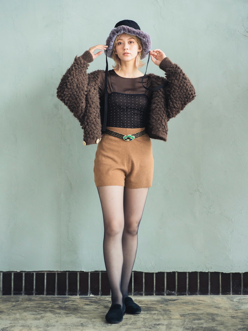 ファーハットとポコポコニットボレロの秋コーデ🌰