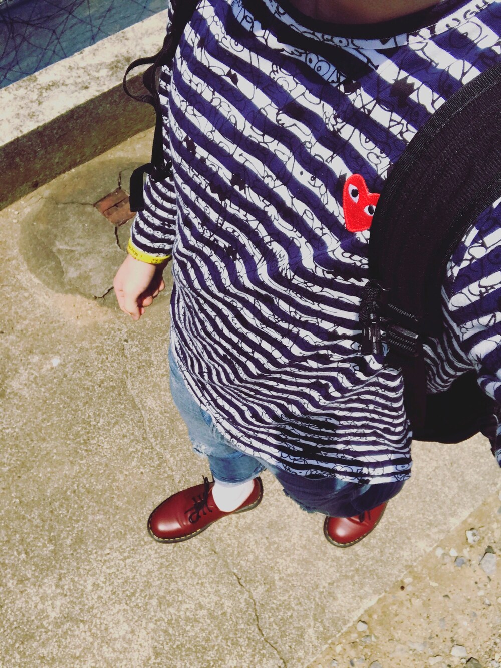 春らしいコーデでダメージジーンズにカワイイ系の系統のCOMME des GARÇONSとDr.Martensを合わせてみました