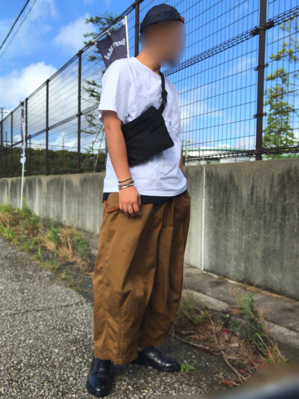 台風通過後、よく晴れています。 帽子:ベトンシレ Tシャツ:ガウンアンドファンデーション タンクトップ:アーバンリサーチ パンツ:ニードルス シューズ:シェットランドフォックス バッグ:ユニクロ ブレスレット:ブルーナボイン ウォレットチェーン:ブルーナボイン