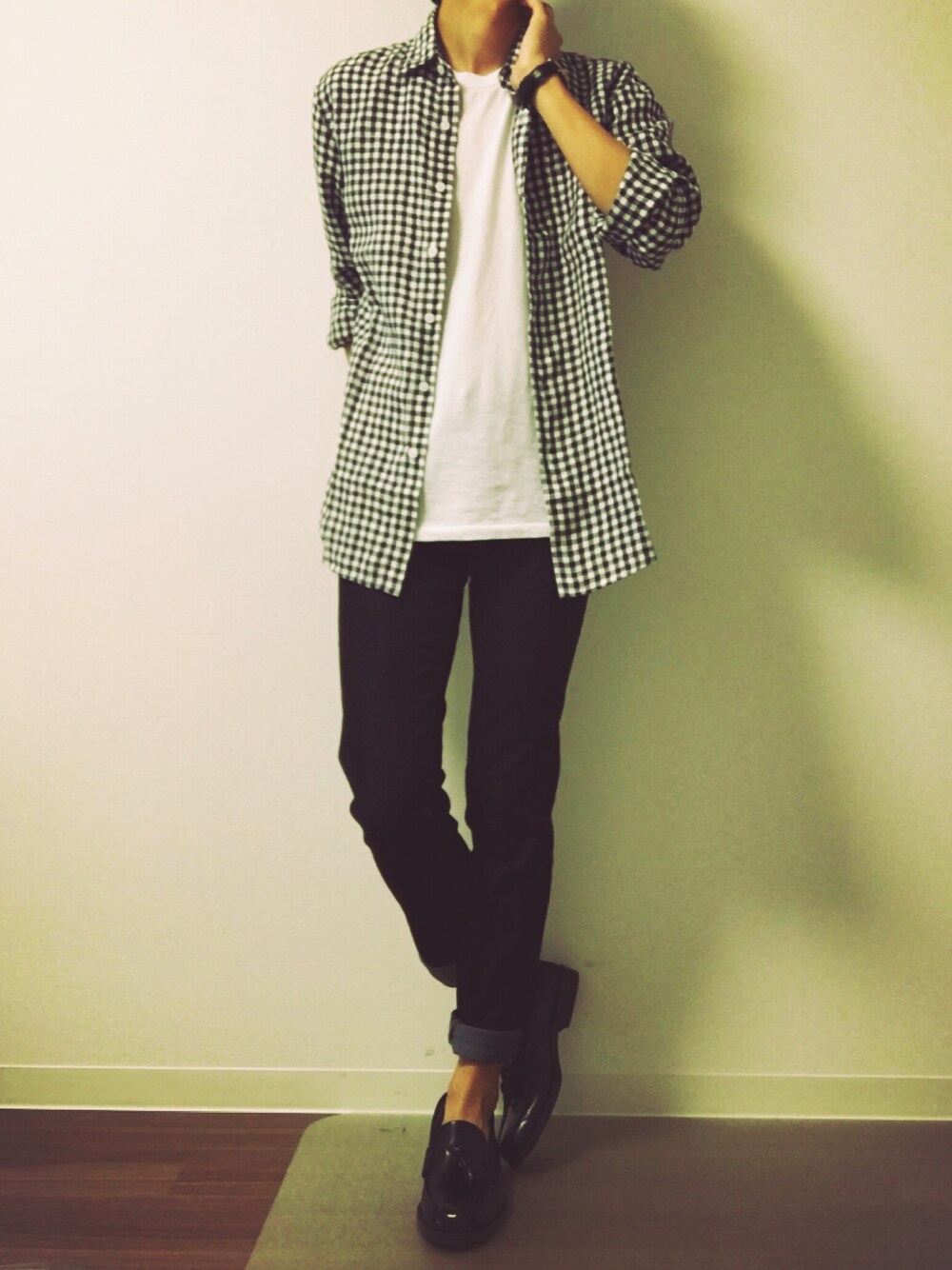 ユニクロコーデ <サイズ> シャツ :S Tシャツ :M パンツ :27 ローファー :25.5