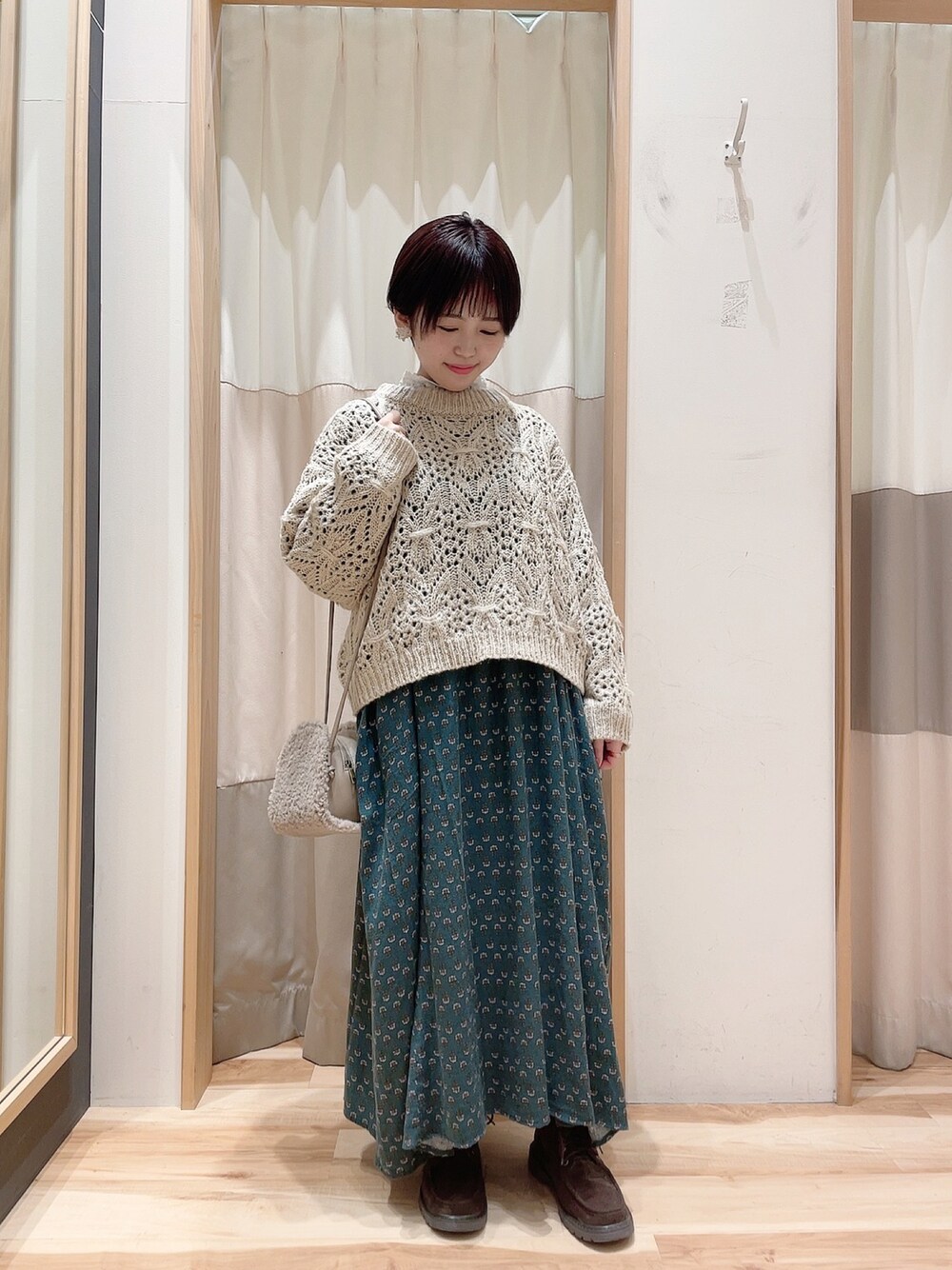 ワンピースとニットの組み合わせがとても可愛らしいコーデです! ニットは丈感が短めなのでワンピースと合わせるとスタイルアップして見えます!