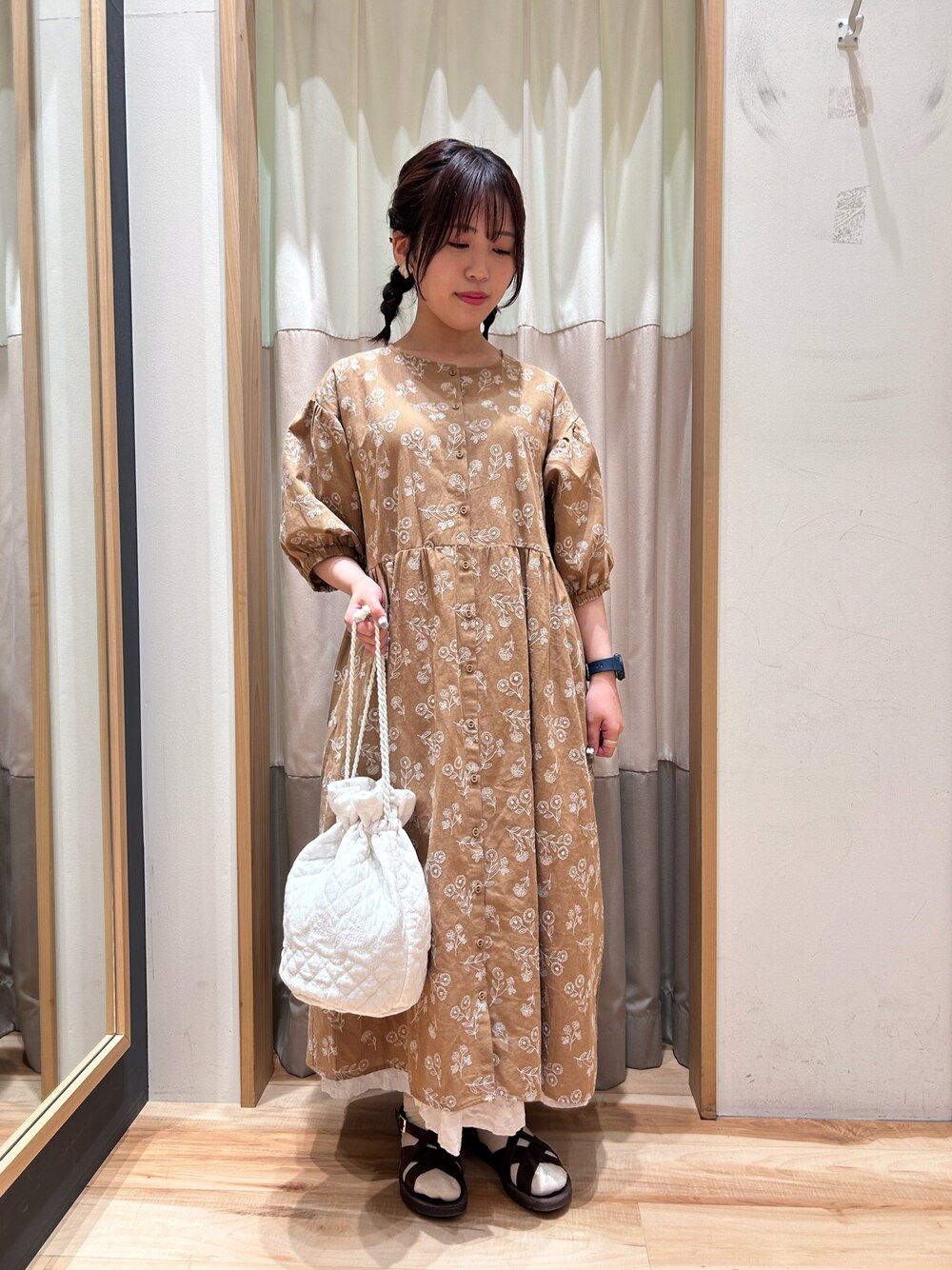 おり(151cm)のワンピース「総刺繍ウエスト切替ワンピース」を使ったコーディネート