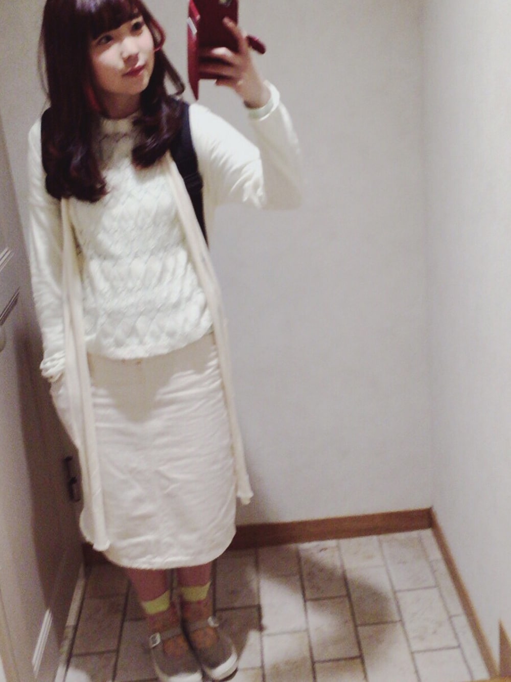 ちょっと寒いけど春意識の白コーデ 靴下に色物持ってきたのとニットベストが透けるので下にミントグリーンを持ってきて春らしさ+α ニットベスト古着なんですけど編みがすごく可愛くてお気に入りです♡ 最近また古着着たい欲が出てきて+1点のMIXスタイルもいいけどものすごくレトロな格好がしたい! 最近全然古着屋行ってないのでどこに行っていいかわからず。。。 どこに売ってあるんだろうな〜