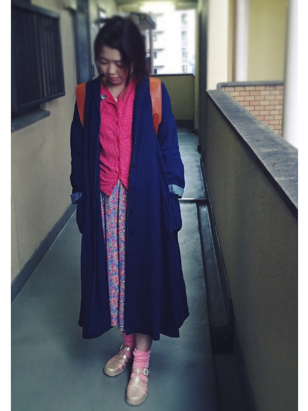 今日はガーリーで甘めな気分であります。 ブラウス、スカート共に古着!どちらも多分500円くらいで手に入れた物だけど色と柄がとてもとてもツボ過ぎてもう何年もお気に入りです。すごく着るわけじゃないけど見てるだけでときめくお洋服です。 最近新しいお洋服が買えない状況なので昔買った古着達がやたらと活躍してます。思いっきりレトロな古着が着たい! 花柄×花柄なおかつ足元までピンク!これだけだと甘すぎたのでデニム持ってきて引き締め引き締め。 ピンクはやっぱり身につけてているだけでテンション上がるしとっても大好きな色です! こんな格好してると腰まで髪伸ばしたくなる、、、。 要するに気分屋です、、、。