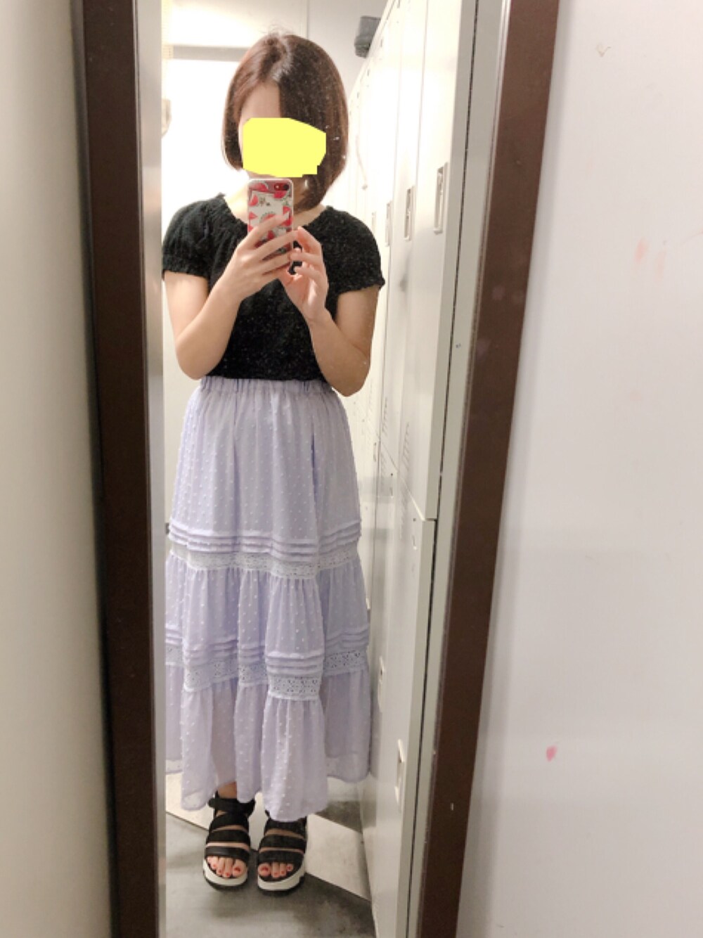 パープルブーム中。 この前ゲットしたスカートメインに。 髪もカットしてスッキリ。