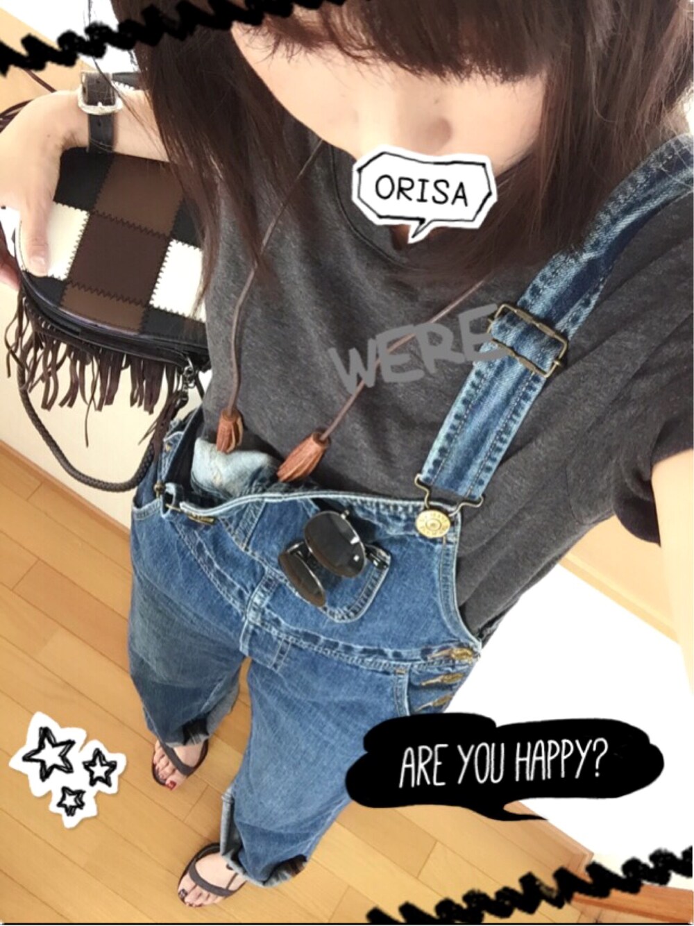 デニムオーバーオール 茶系小物( •̀∀•́ )b ブラウンタッセルネックレス ORISA BY HOOK💋💋