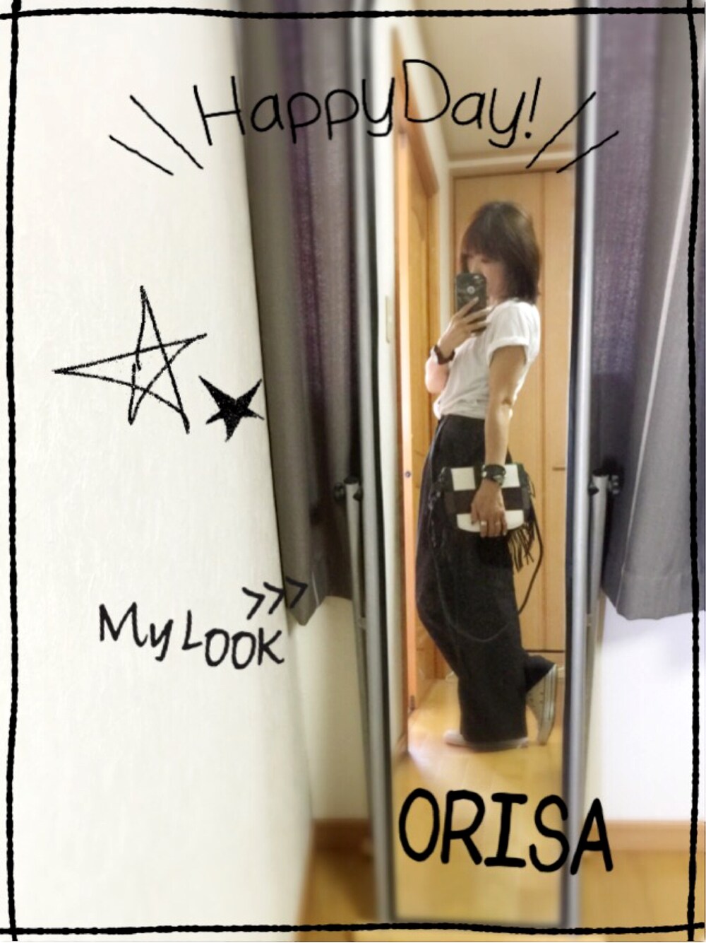 超シンプルワイドパンツコーデ おりさはコンバースで合わせるのが好き♥️