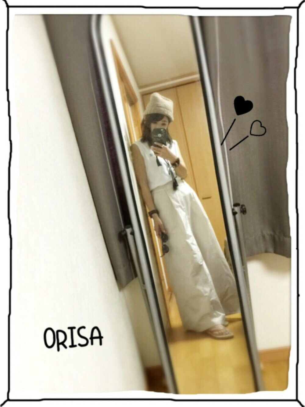 雨にこのコーデはダメだった。ԅ(¯﹃¯ԅ) 久しぶりにベージュ系 ワイドパンツはライトベージュ UGGのサンダルはモコモコがかわいい(๑ơ ₃ ơ)♥