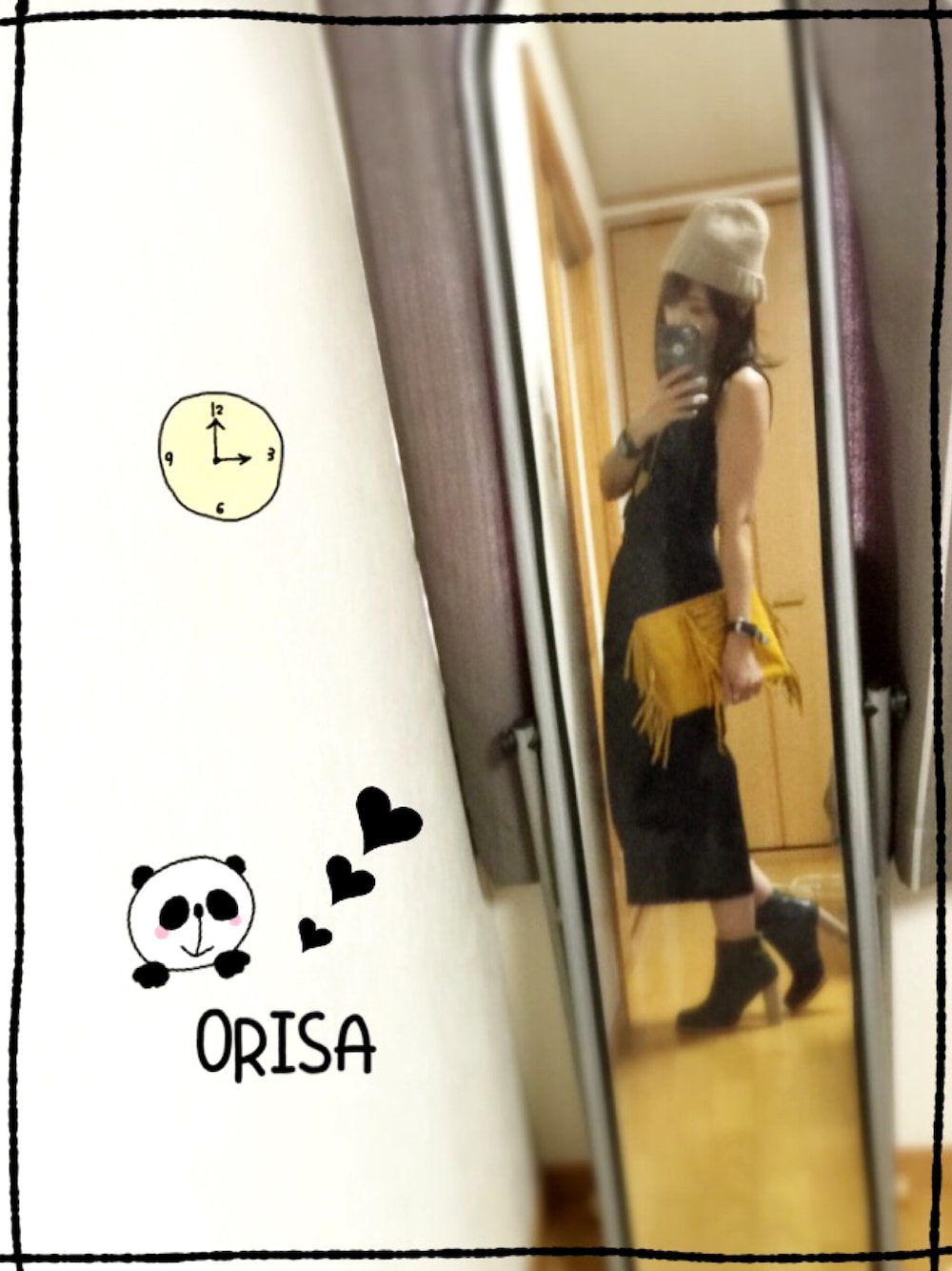 今日は美容院行くよ。コーデ。 いつもオールブラックで行く。(*」゚∀゚)」 ヘアーのイメージ取りやすいから・・・ そして差し色にイエロー(*´˘`*)♡ クラッチバッグで遊ぶ。