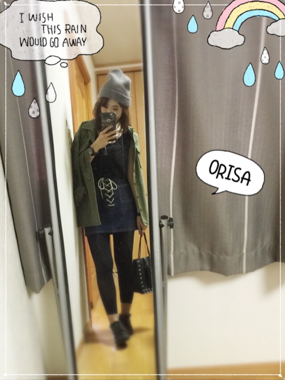 朝から友だちとモーニングコーデ☕☕ レースアップのデニムスカート 夏着ないでまさかの今(⊙ꇴ⊙) レギンスと合わせたよ。(笑) SLY×VANSはエナメルのチャッカ 雨の日にいいよ。( •̀∀•́ )b