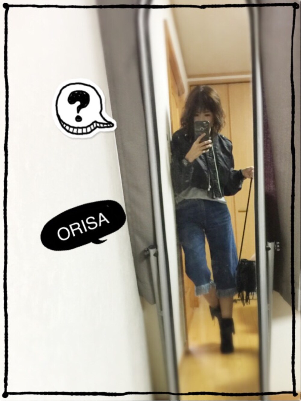 今日はデニムガウチョ。 クロップドMA1とフリンジブーツで合わせたよ。 バッグもフリンジ。 でも脚出てる場所寒かった~~~。