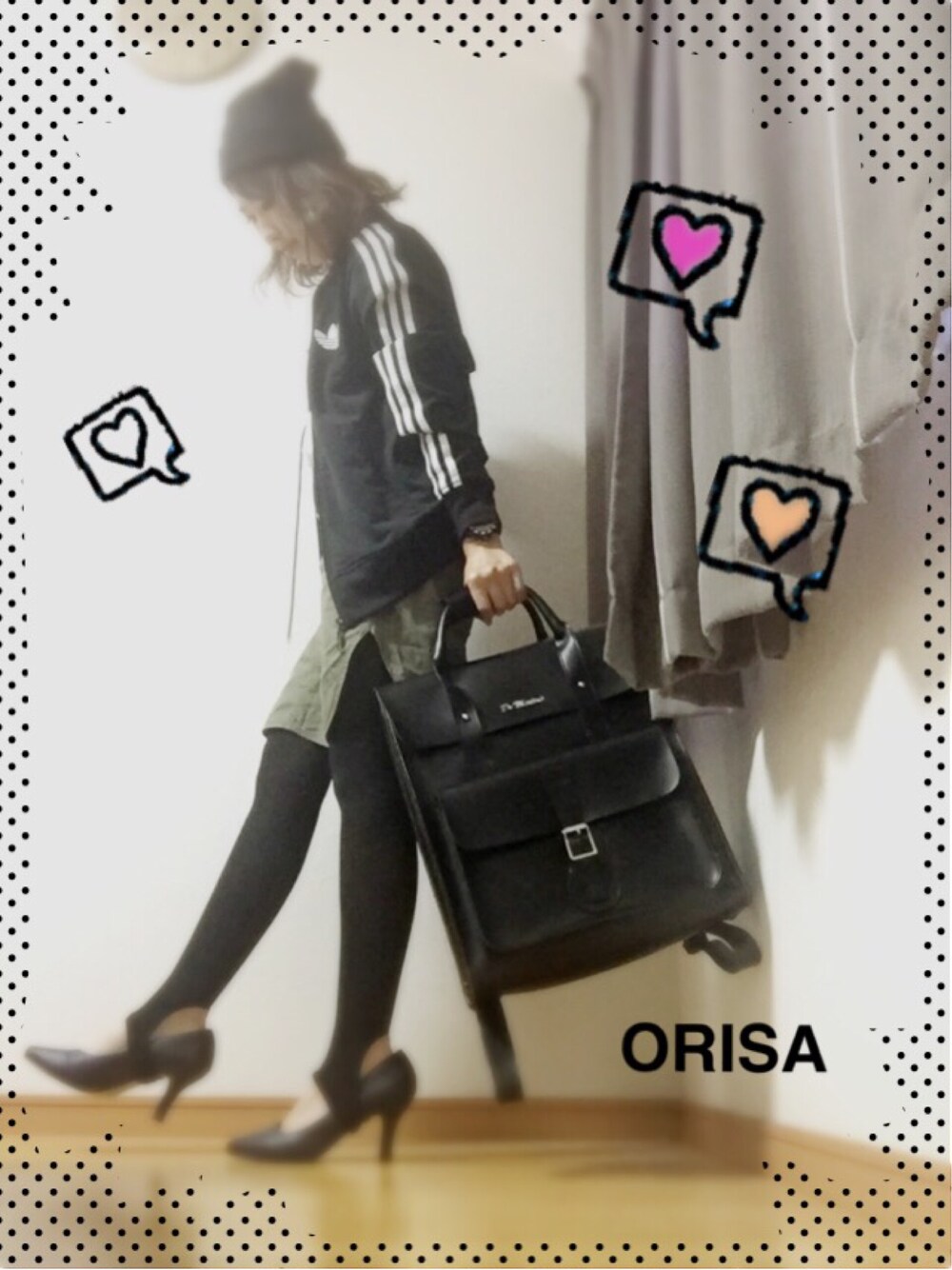 今日はめずらしくパンプス♡ トレンカと合わせてみたよ。 新鮮(*゚▽゚)ノ らしさを出したアディダスジャージ×ビーニー 今日もがんばろう(*」゚∀゚)」
