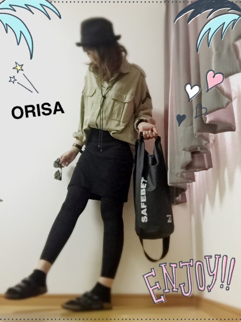 おはようです꒰●꒡ ̫ ꒡●꒱ 今日からキャンプ行ってきま~~~す。(*´╰╯`๓)♬ そんな初日コーデは?? おりさ定番♡ミリタリーシャツ♡ と、楽チンスカート×レギンス 久しぶりにERAのハット。🎩 今日から2泊3日楽しもう(❁´ω`❁)