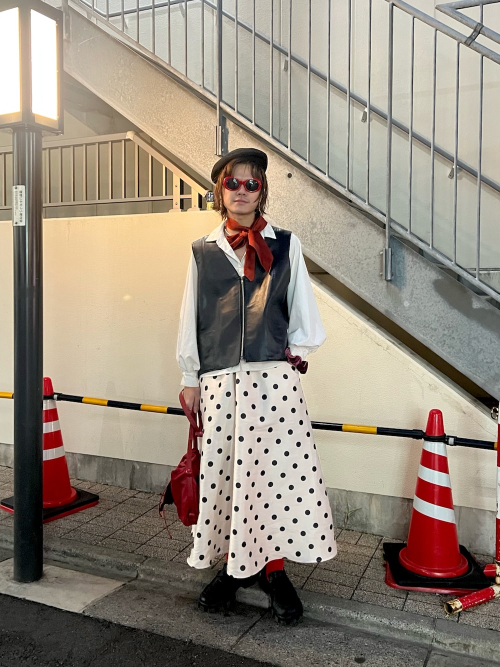 モノトーン軸に差し色での色合わせ、ドット柄スカートを取り入れてモードポップな雰囲気に🌬️