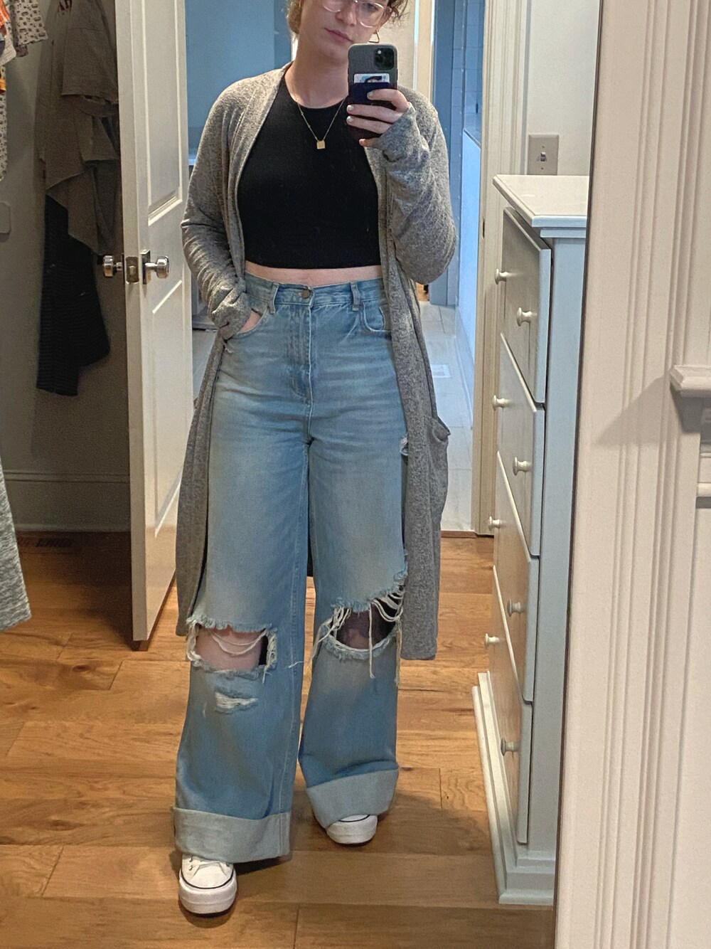 Livのデニムパンツ「Bdg BDG High-Waisted Baggy Jean Destroyed Light Wash」を使ったコーディネート