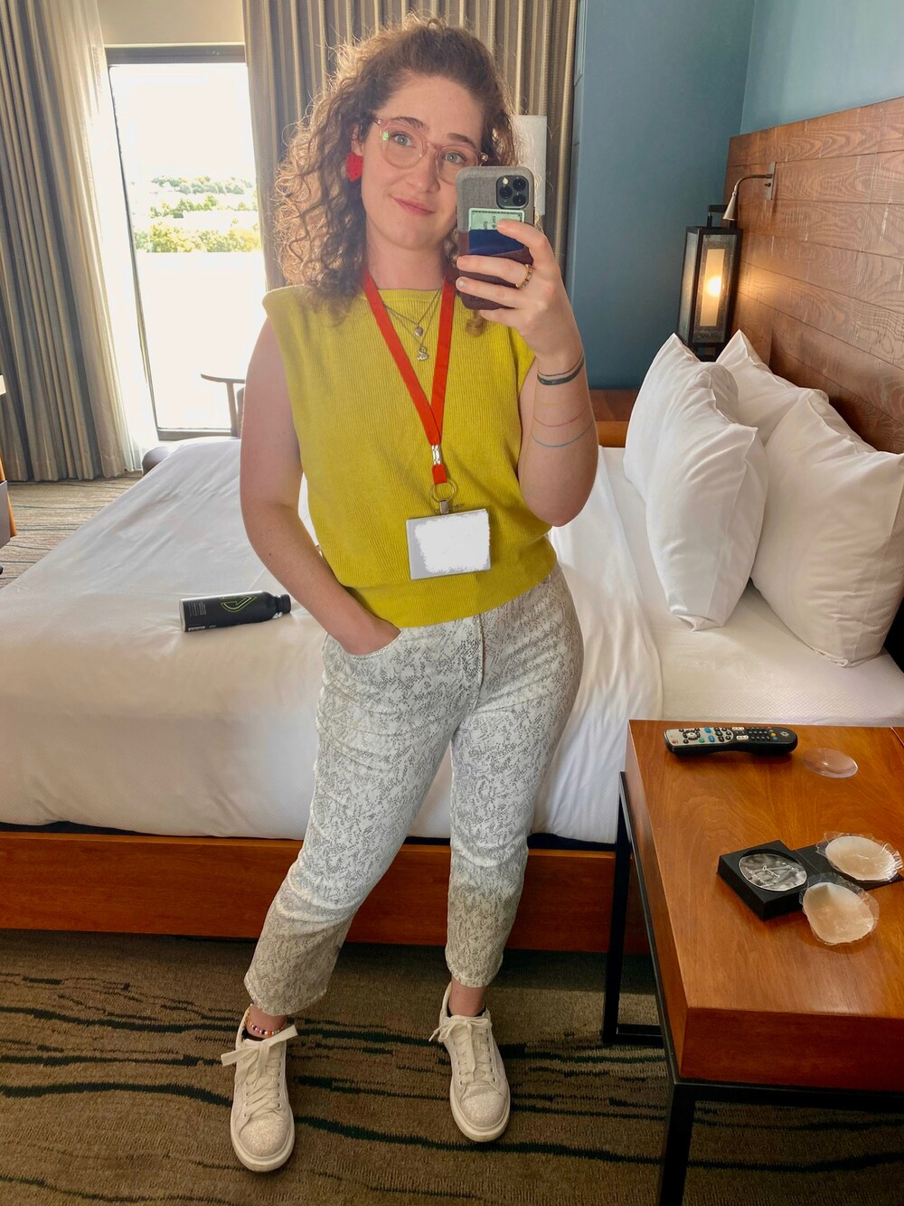 Worn for a corporate training day with red beaded heart earrings ♥️ and a chunky beaded anklet. The shoulder pads always help me feel confident!