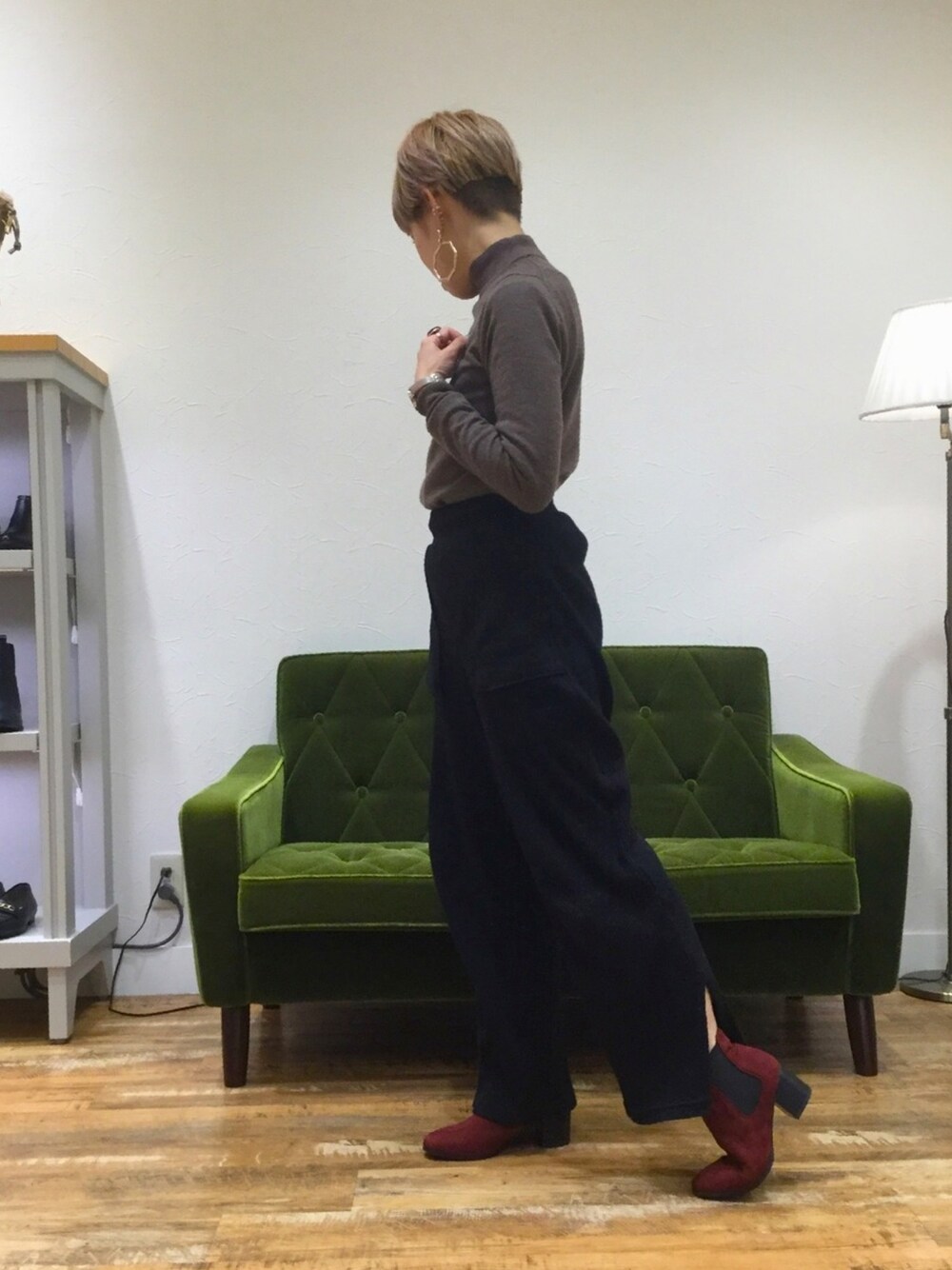 ゆったりめのパンツも履き口が細身のサイドゴアブーツとも相性抜群✨ 定番アイテムはどんなコーディネイトにもあわせやすいです! もちろんソックス×スカートなどのガーリーコーデにも◎