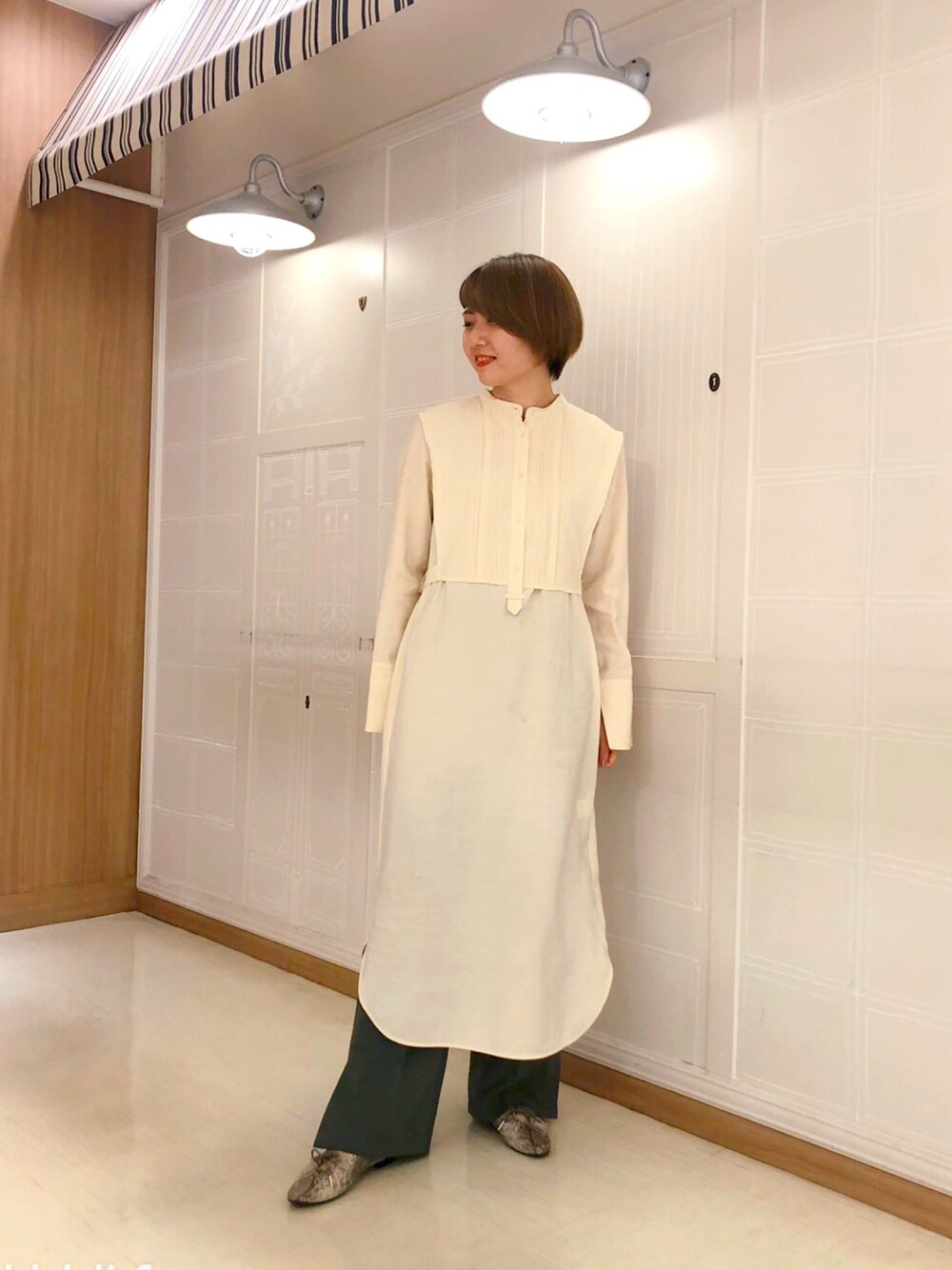 イオンモール名取店のワンピース「ピンタックレイヤードワンピース」を使ったコーディネート
