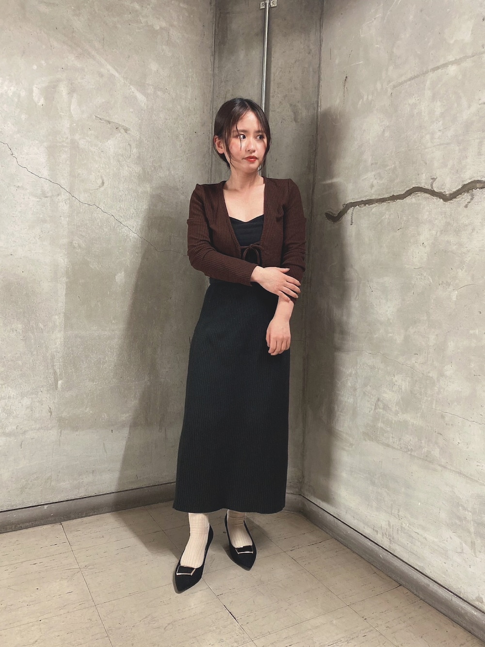 シャープなポインテッドトゥと細みのヒールが女性らしいパンプス👠✨ あえて、パンプス×靴下で合わせてみました❣️ ゴールドのスクエアモチーフは取り外しができるので、 その日のコーディネートに合わせて2wayで楽しめます! 32308/BL/34